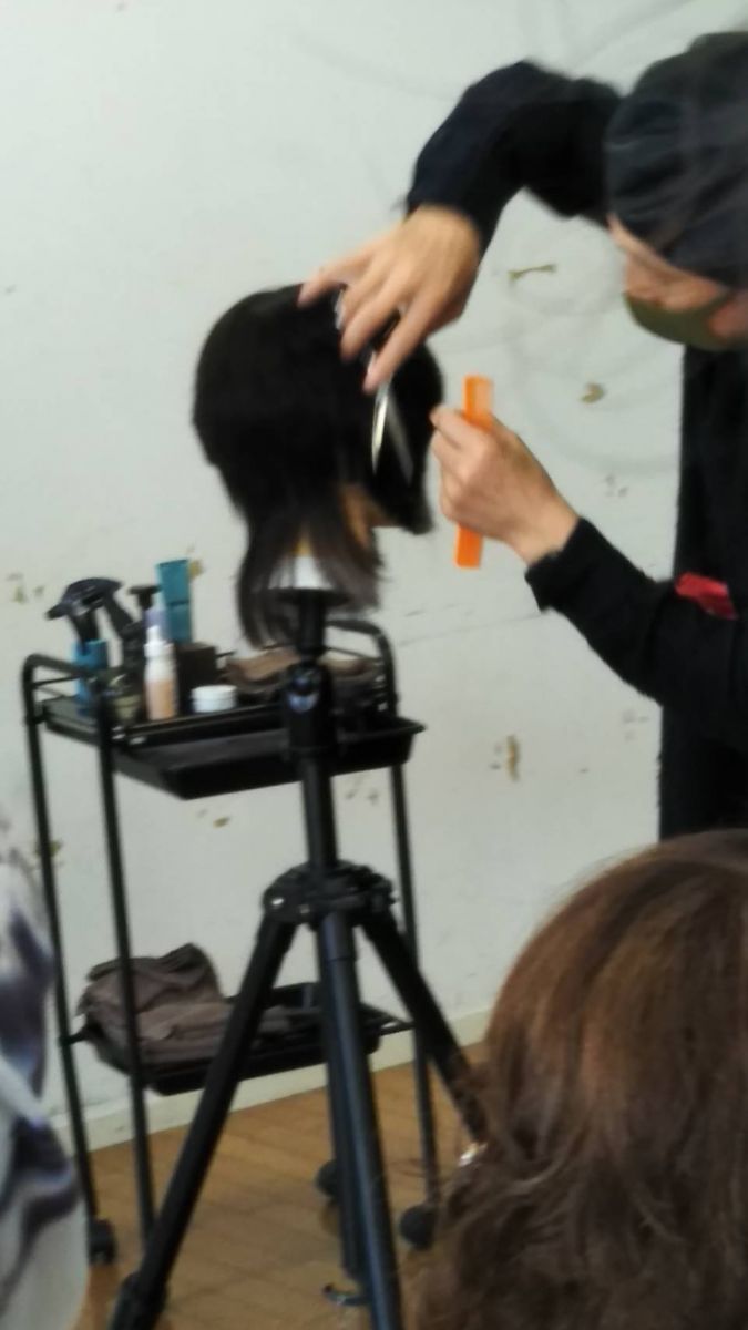 コロナ自粛ムードで、空いた時間を無駄なく自主トレの時間に!ウイッグでウイービングカラーを日々練習!タイムアップに挑戦!今日はモデルさんに施術してみました。